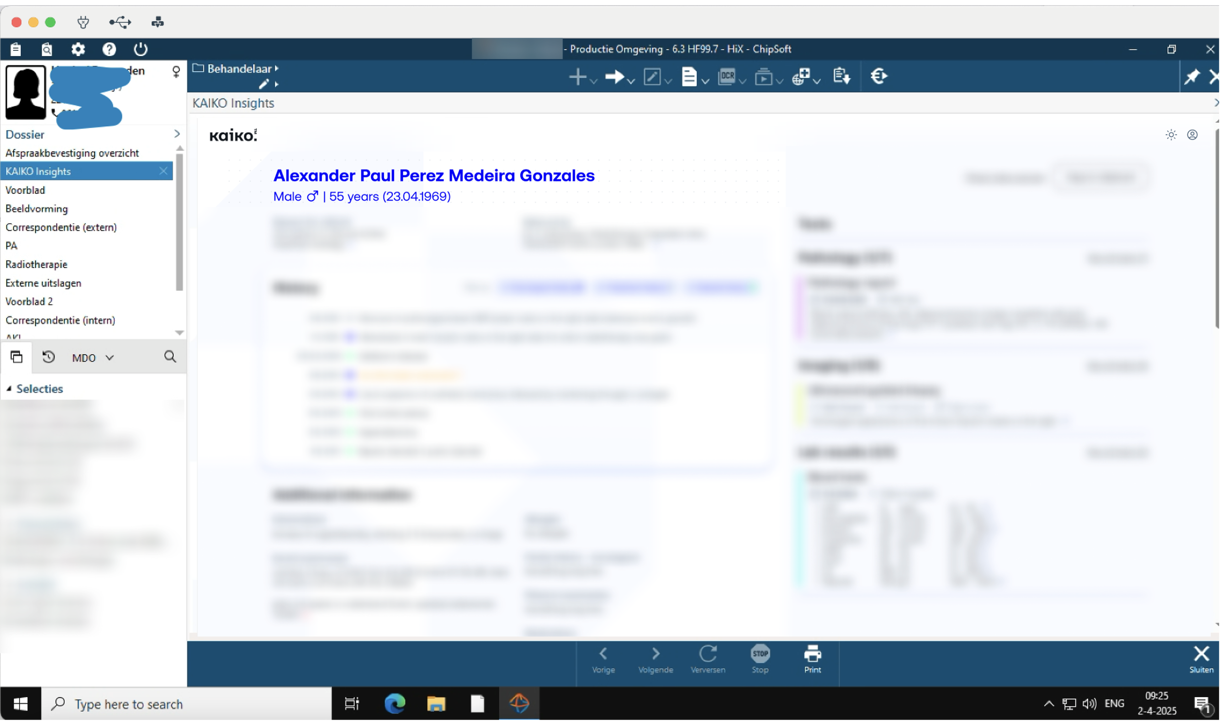 Screen of PoC integration into the EHR. Blurred as it is subject of NDA